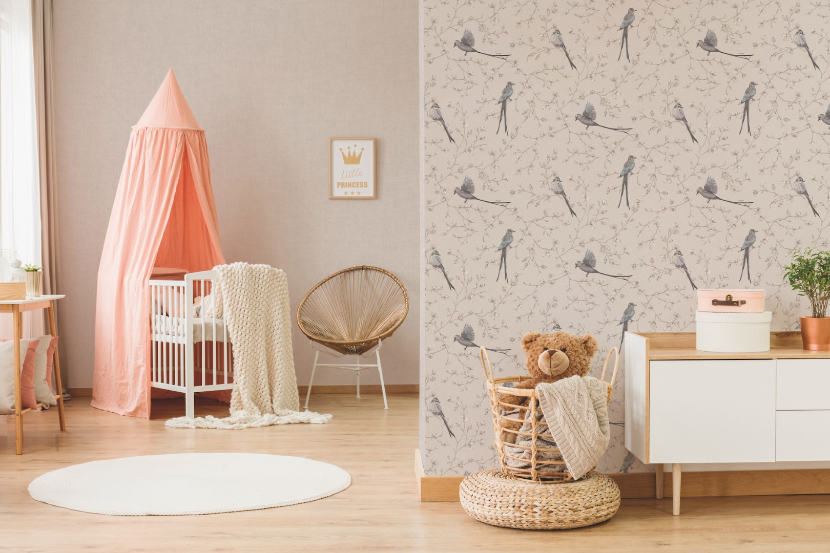 Обои флизелиновые "Birds", мотив бежевый 1,06х10 м.