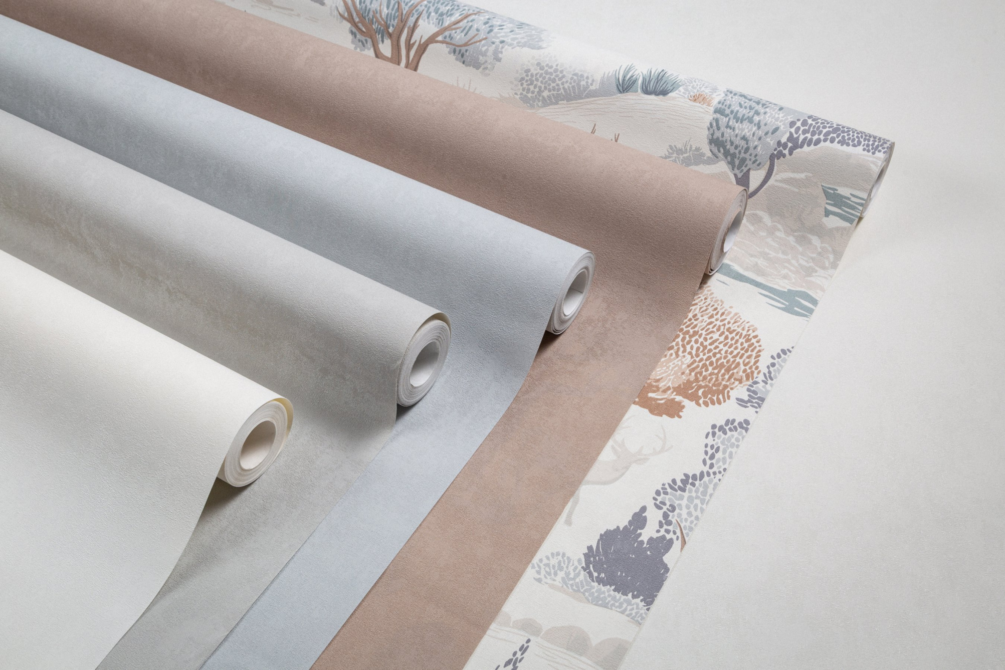 Живописный сюжет с деревьями и оленями в nordic-стиле.