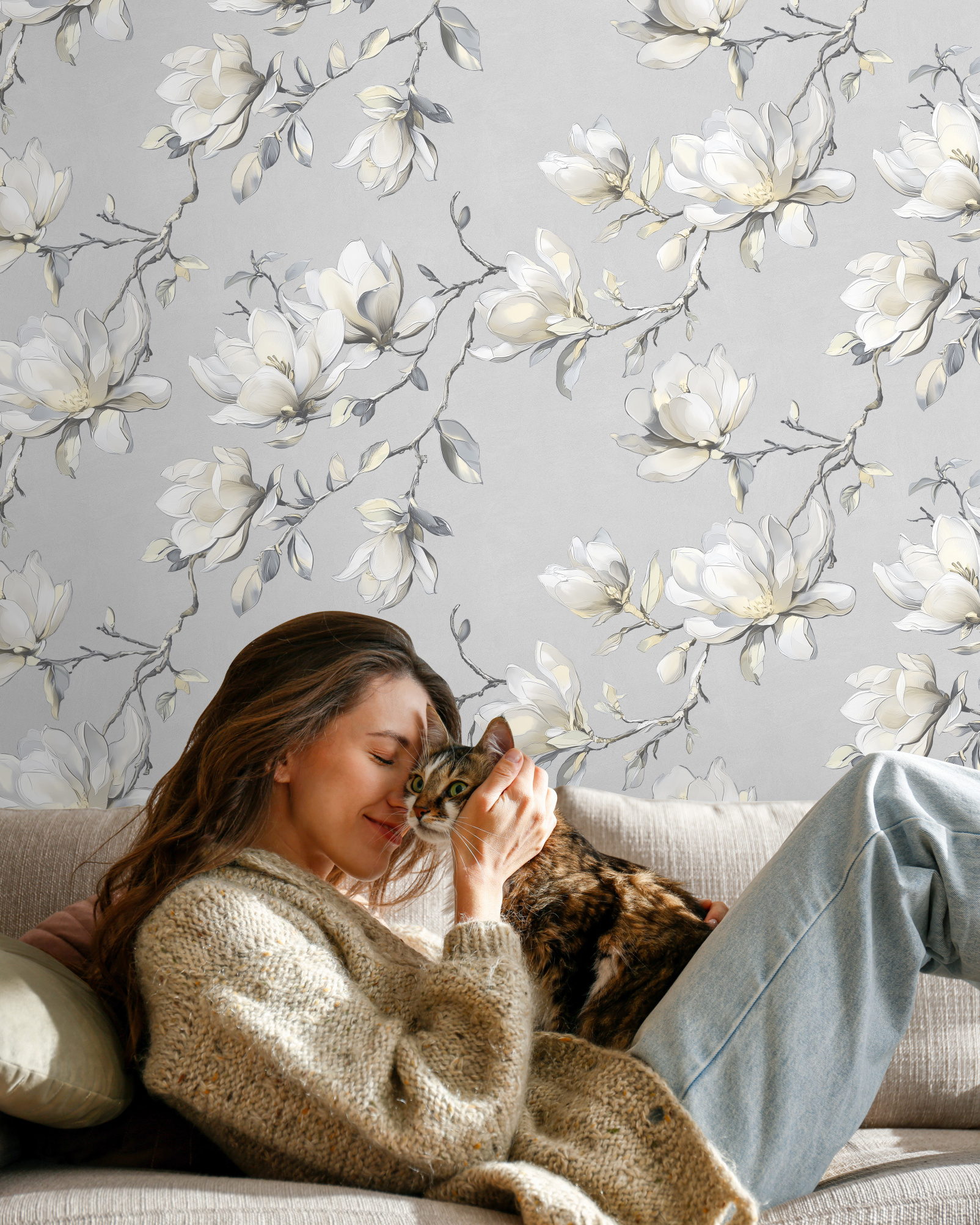 Обои флизелиновые "Magnolia", мотив бежевый 1.06*10 м.