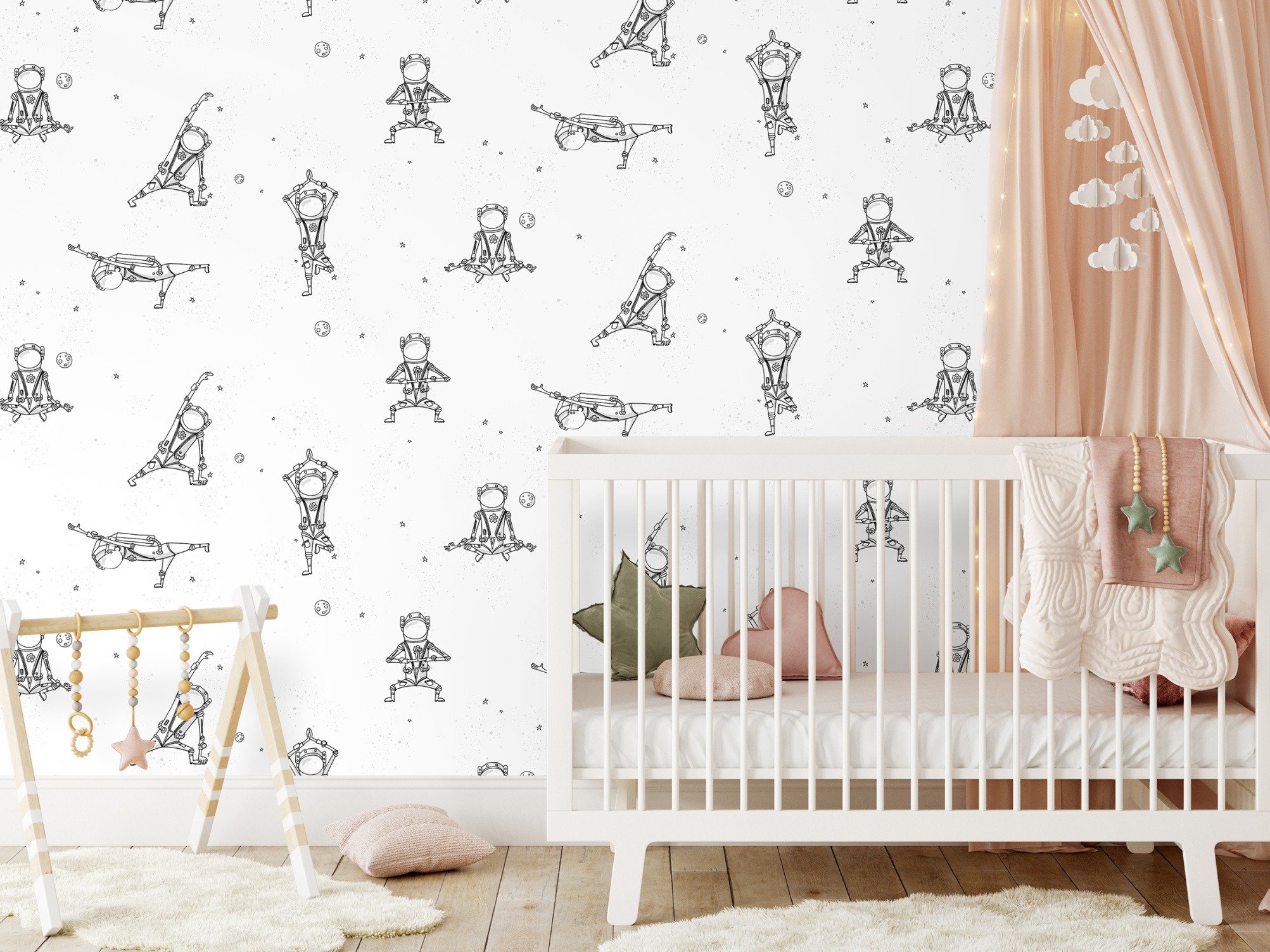 Обои флизелиновые "Spaceman", мотив белый 1,06х10 м