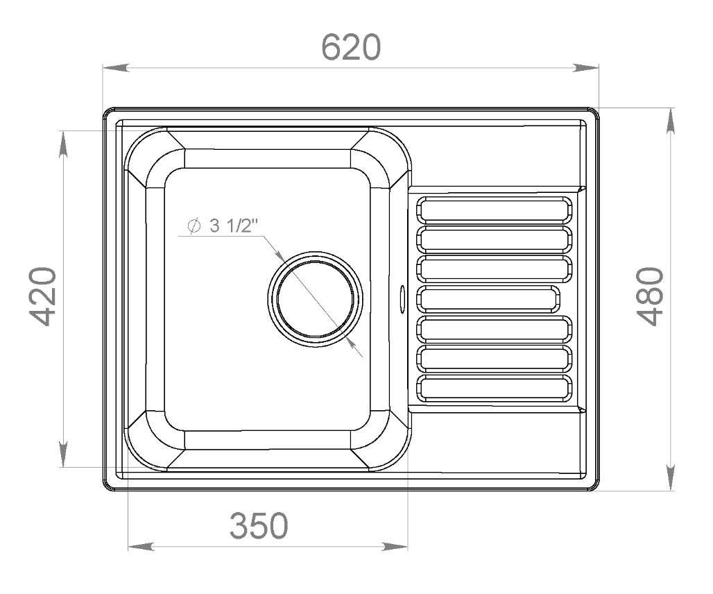 Мойка керамическая 620х480 мм, белая, арт.13, Granfest