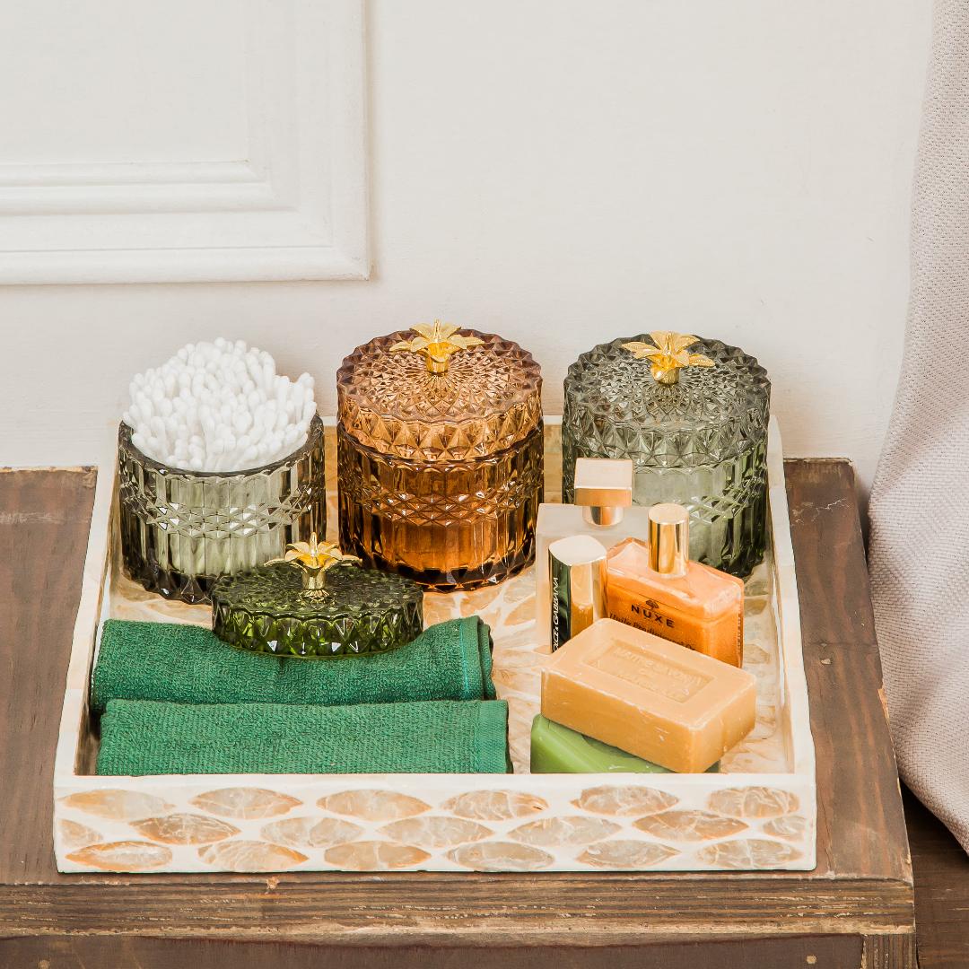 Шкатулка декоративная стеклянная 9х9х10см оливковый