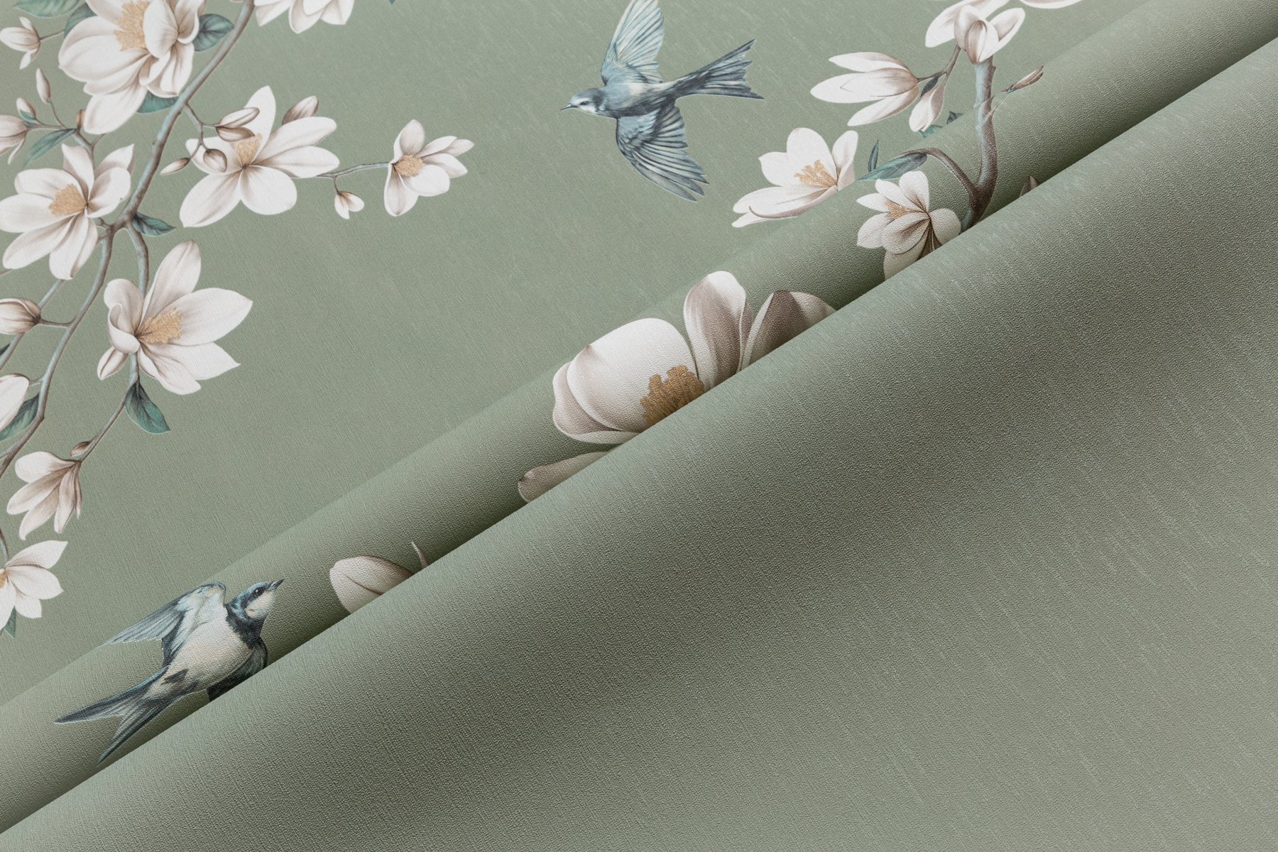 Обои флизелиновые "Magnolia" фон зеленый 1.06*10.05м