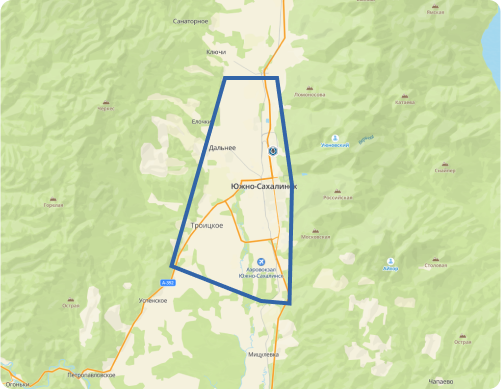География: г. Южно-Сахалинск, выделенная зона (п/р Ново-Александровка, Дальнее, «Генерал» с. Троицкое, с. Новотроицкое)